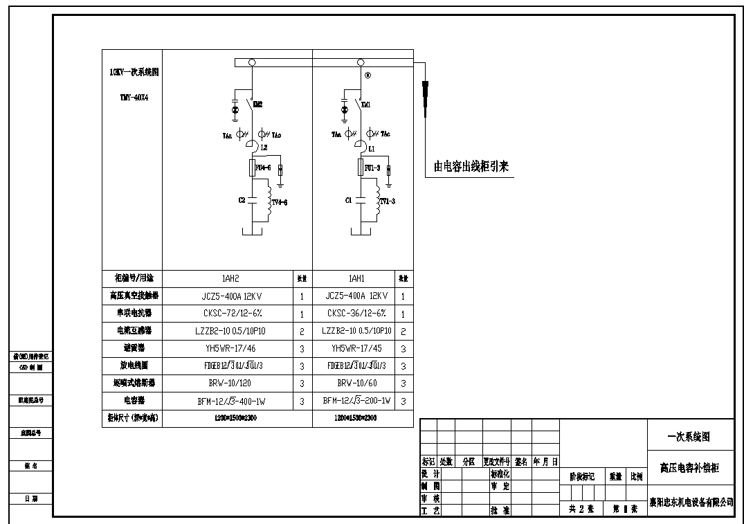 TBB-1800Kvar-10KV高壓電容補償柜系統(tǒng)圖