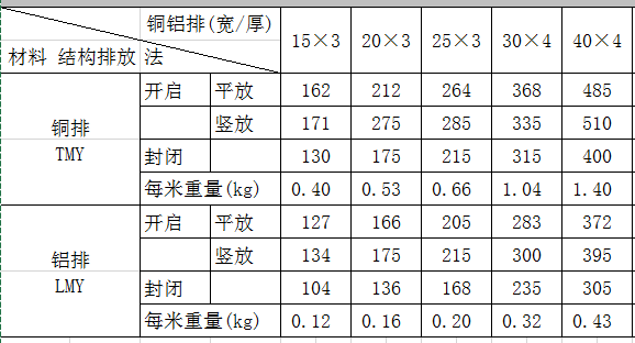 | 銅排 | 開啟 | 平放 | 162 | 212 | 264 | 368 | 485 | 540 | 660 | 740 | 873 | 1018 | 1140 | 1115 | 1270 | 1430 | 1356 | 1565 | 1785 | 1860 | 1980 | 1340 | 1950 | ||||||||||||||||||||||